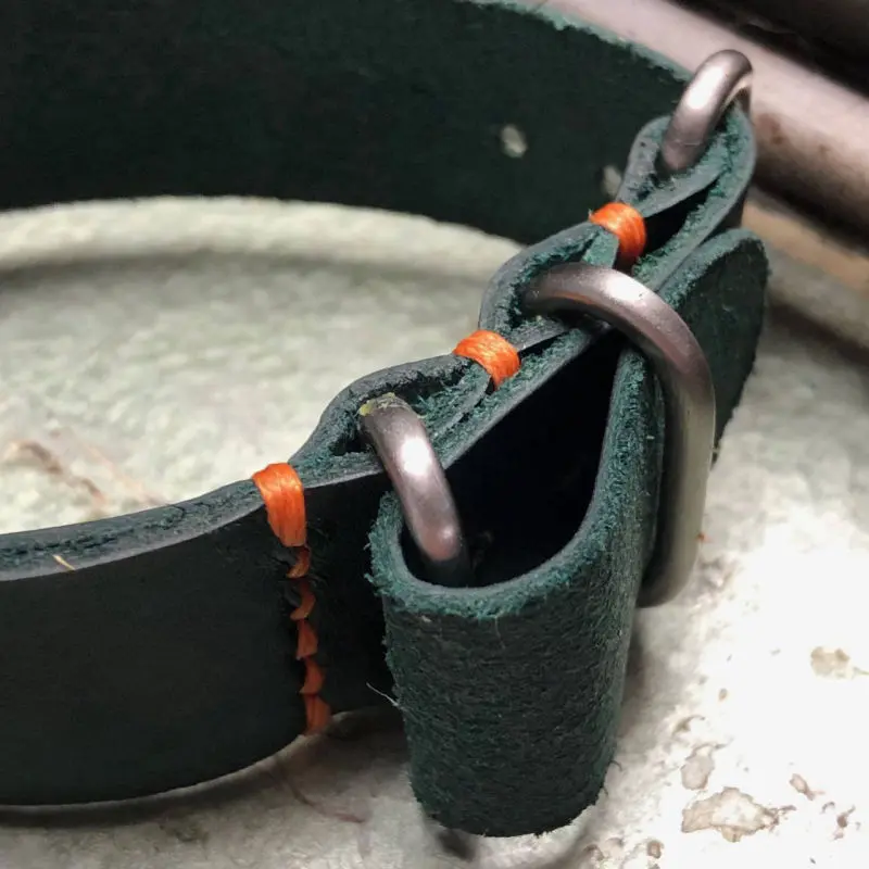 Contrast stitched. Completely handcrafted like all straps I make.